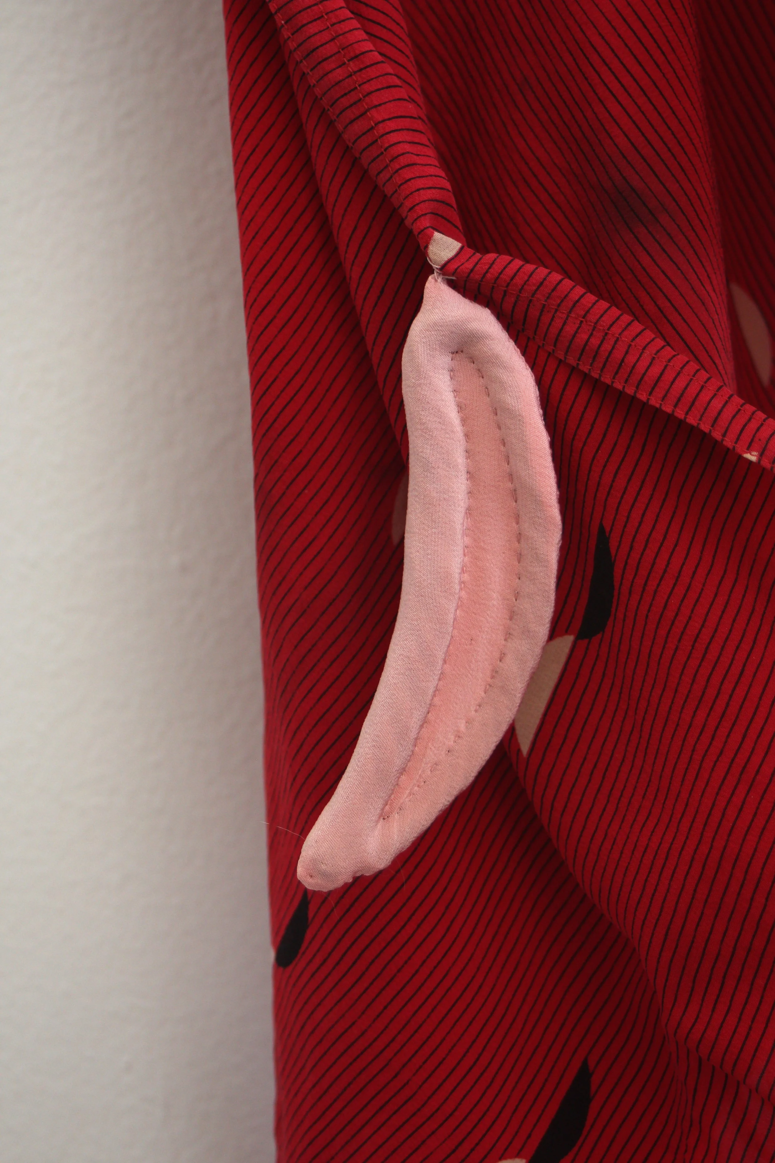 silk garment fragment, hand-dyed silk crepe, jute rope, embroidery, appliqué, 2018